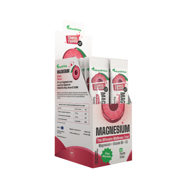 Nature Prime MAGNESIUM DRINK is a food supplement dedicated for adults to help in maintaining proper psychological function, reduce the feeling of tiredness and fatigue as well as support proper energy-yielding metabolism (Vitamin B6 and Magnesium). It contains high dose of magnesium bisglycinate, vitamin B6 and 2000IU of Vitamin D3.